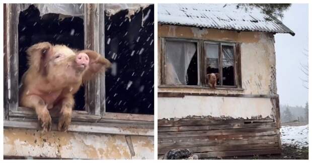 Свинья по прозвищу Груту из поселка Бакуриани в Грузии жила в полуразрушенном здании и любила выглядывать на улицу. Момент с любующейся снегопадом Груту попал на видео и сделал хрюшку знаменитой.