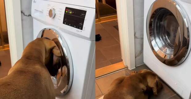 Пёс переживает настоящую драму, когда хозяйка отправляет его любимые игрушки в стирку.