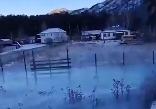 Сейчас на Алтае стоит мороз -20. Из-за наледи река Чемал вышла из берегов и превратила жилые участки в каток и ледяное месиво.