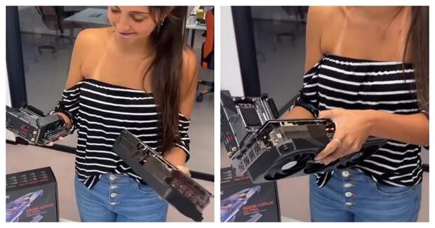 Размеры представителей последних поколений видеокарт способны впечатлить. На видео подключение крупной видеокарты к материнской плате Mini-ITX.