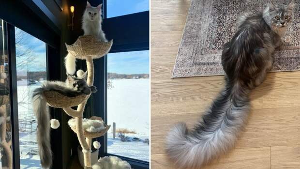 Двухлетний мейн-кун по имени Пагсли Аддамс из Миннесоты официально стал обладателем самого длинного в мире хвоста среди домашних кошек. Его хвост был измерен ветеринарами и составил внушительные 46,99 см.