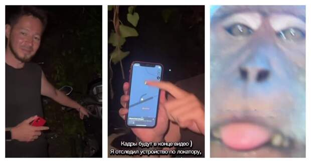 Обезьяны украли айфон из бардачка байка парня. Он заметил пропажу и отправился на поиски.