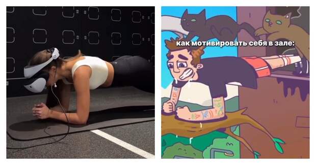 С их помощью девушка придумала лайфхак, как не сдаваться в зале. Например, при становой тяге в виртуальной реальности она поднимает машину, чтобы освободить котиков, а в планке становится «мостом», по которому кошки убегают с горящего здания.