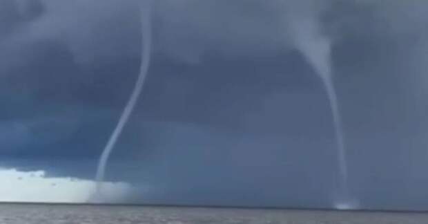 С берега Ладожского озера в Ленинградской области было замечено сразу несколько смерчей. Очевидцы насчитали три воронки, поднимающиеся от воды в небо.