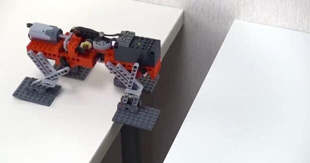 Любитель конструктора LEGO устроил соревнования шагоходов. Участники пытались добраться с одного стола на другой и преодолевали различные сложные участки.