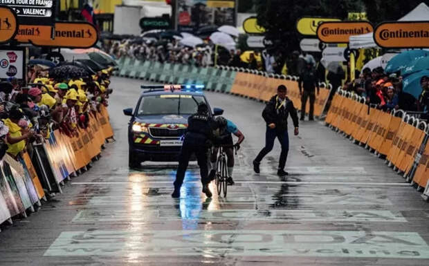 Шутник, переодетый в настоящую экипировку команды Decathlon AG2R La Mondiale, выехал на трассу Тур де Франс незадолго до финиша 17-го этапа и притворился победителем гонки. Сотрудники службы безопасности и полиции не оценили такую шутку и нахлобучили велосипедиста.