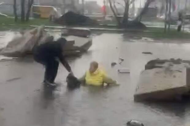 Сильным потоком воды пенсионерку снесло в люк, выбраться из которого ей помогли прохожие. Горожане героически справлялись с последствиями ливня.