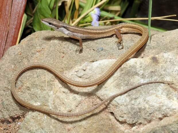 Знакомьтесь, шестиполосая долгохвостка. Хвост этой небольшой ящерицы превышает длину остального тела в три раза!
