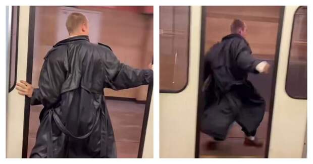 Парень решил эффектно выйти из вагона метро. У него это получилось.