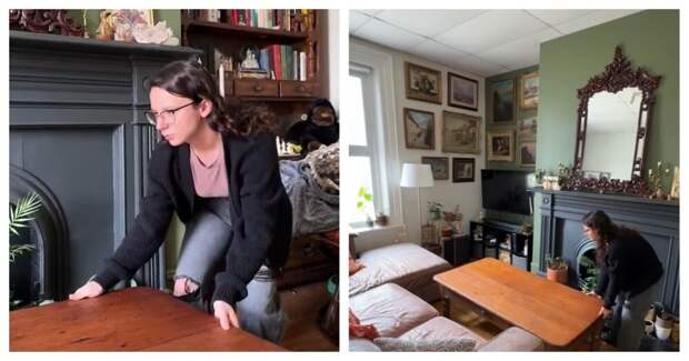 Девушка показала на примере жилища, что обычно бывает, когда хочешь немного подвинуть картинку или таблицу в Microsoft Word.