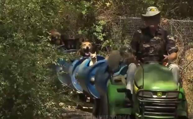 По словам работяги, пёселям это очень нравится и они сами ждут такие «прогулки».