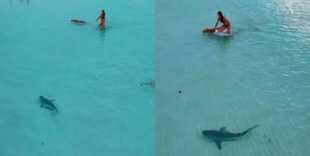 На побережье Саут-Бич в Майами, штат Флорида, беспилотник зафиксировал момент приближения черноперой акулы к отдыхающим и собаке. Владелица животного смело встала на защиту своего четвероногого друга.