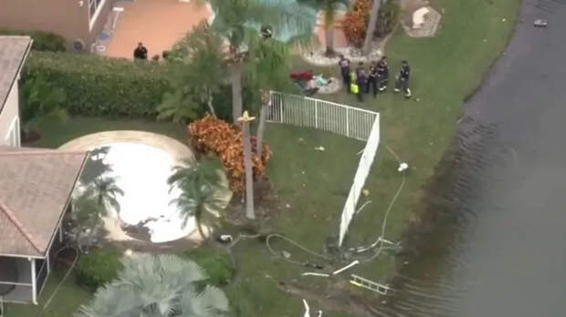 Самолет с гуманитарной помощью для Ямайки потерпело крушение на придомовой территории в американском городе Корал-Спрингс. Момент попал на камеру видеонаблюдения