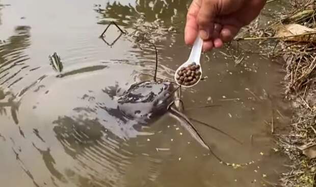 В Таиланде мужчина подружился с сомом и теперь кормит его с ложки.