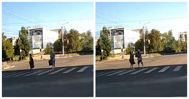 Как оказалось, одна из старушек побежала на красный, а вторая за нее сильно забеспокоилась и бросилась за ней.