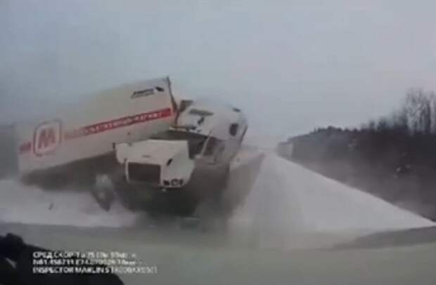 11 января на 55 километре трассы Сургут – Нижневартовск большегруз Фрейтлайнер под управлением 51-летнего водителя столкнулся с попутным грузовиком Ман, поле чего его вынесло на встречную полосу где произошло столкновение с другим большегрузом Фрейтлайнер. В результате столкновения 41-летний водитель второго грузовика с видеорегистратором получил травмы.