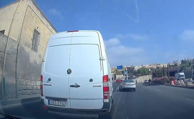 В Марсе (город на Мальте) хитроумный водитель решил объехать всех справа, а затем вклиниться в полосу, но что-то пошло не по плану.