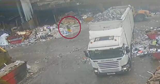 Камера видеонаблюдения зафиксировала момент, как на площадке по переработке отходов ковшовый погрузчик наехал на рабочего. 40-летний мужчина чуть не лишился жизни.