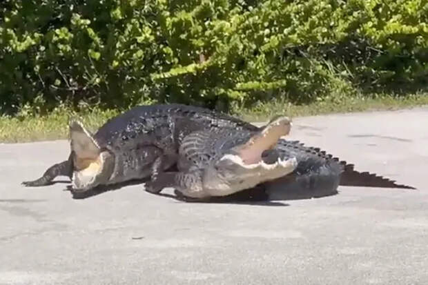 В Национальном парке Эверглейдс, что на юге Флориды, произошло редкое и зрелищное столкновение между двумя хищниками — американским крокодилом и аллигатором.