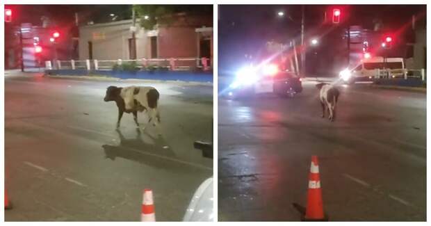На кадрах, снятых случайным свидетелем видно, как перед животным, разгуливающим по проезжей части, останавливается полицейский автомобиль. Сотрудник полиции включил сирену, а затем вышел на улицу.