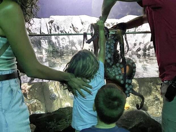 В контактном океанариуме Сан-Антонио, США, осьминог оставил юному посетителю множество синяков.