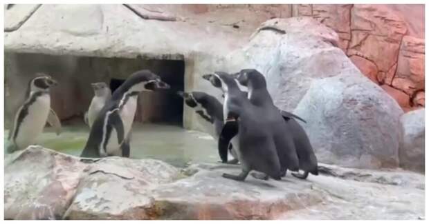 Пингвины в Московском зоопарке устроили разборки за территорию. Все совпадения с людьми случайны.