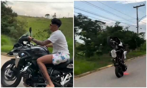 Всё как мы любим - мотоцикл, отсутствие экипировки и много понтов помноженное на BMW.