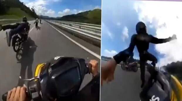 Любитель острых ощущений, совершавший поездку в лежачем положении, слетел со своего транспортного средства.