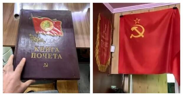 Мужчина рассказал об уголке советского прошлого в одном из магазинов в посёлке Бактыбай. Людей встречают почетные грамоты, вымпелы и не только.
