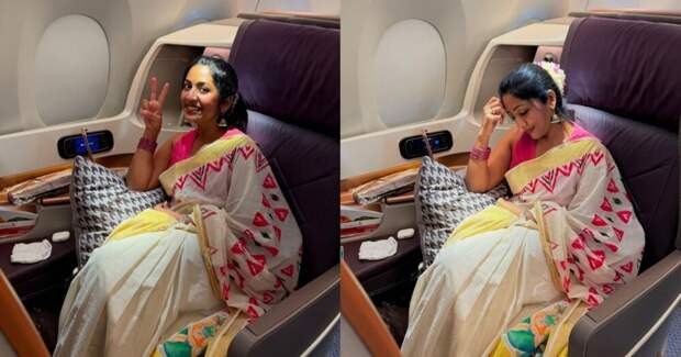 Навья Наир отправилась из Индии в Сингапур, а затем в Австралию. Перед вылетом актриса украсила волосы гаджрой (гирлянда из жасмина), которую ей подарил отец. Мужчина также подготовил второе ожерелье, зная, что первое может завянуть в дороге.