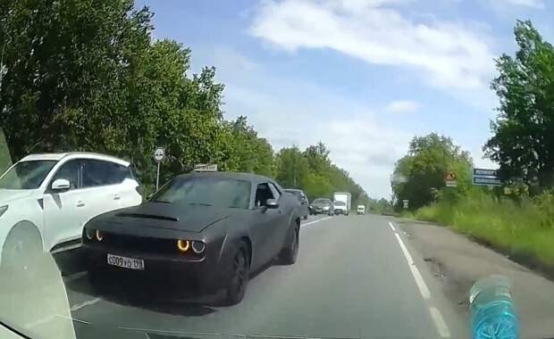 В Санкт-Петербурге водитель автомобиля "Додж Челленджер" безответственно ехал по встречной полосе и чуть не устроил лобовую аварию.