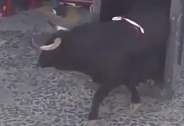 Одного человека животное ударило рогами, ещё нескольких как следует потоптало.