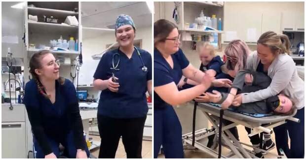 Работающие в ветеринарной клиники женщины изобразили поведение собак, когда тех привозят на осмотр. Данное видео является продолжением предыдущей подборки.