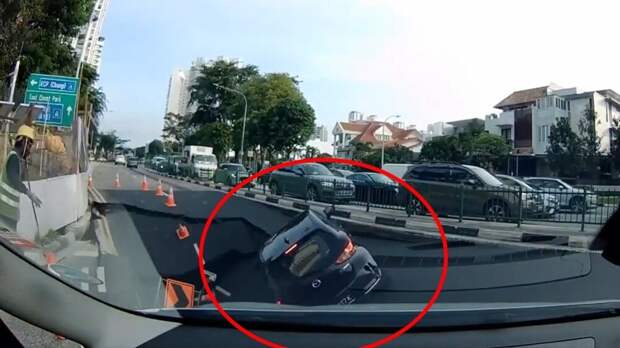 В Сингапуре машина с автоледи провалилась вместе с асфальтом на одном из перекрестков. Девушку удалось спасти — еёс травмами доставили в больницу.