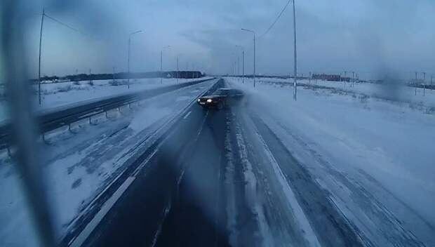 Водитель старенькой Ауди очень спешил в Омск, но не доехал и исполнил очень зрелищный трюк.