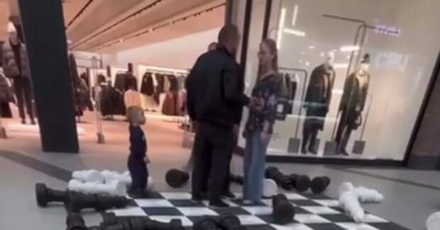 Мальчик расшвырял фигуры на гигантской шахматной доске, а когда ему сделали замечание, подошёл отец.