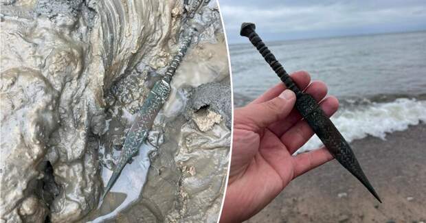 В Польше обнаружен таинственный древний кинжал с искусной гравировкой. После шторма на Балтийском море кладоискатели Яцек Уковски и Катаржина Хердзик прочёсывали берег и отыскали в глине ценный артефакт.