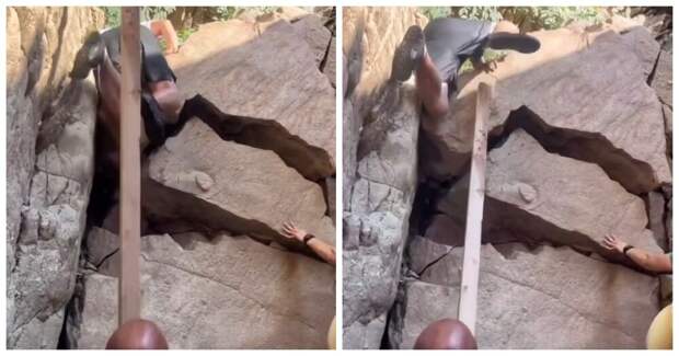 Шутник оказал своеобразную помощь своему приятелю во время подъема.