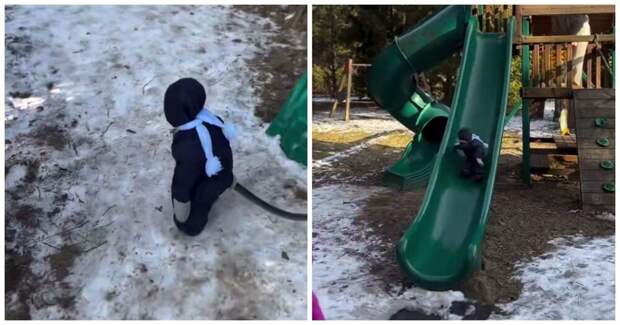 Обезьянку Мирона, которая уже несколько лет живет в российской семье, облачили в зимний комбинезон и вывели на прогулку. Кроме того, макаку сводили в зоопарк.
