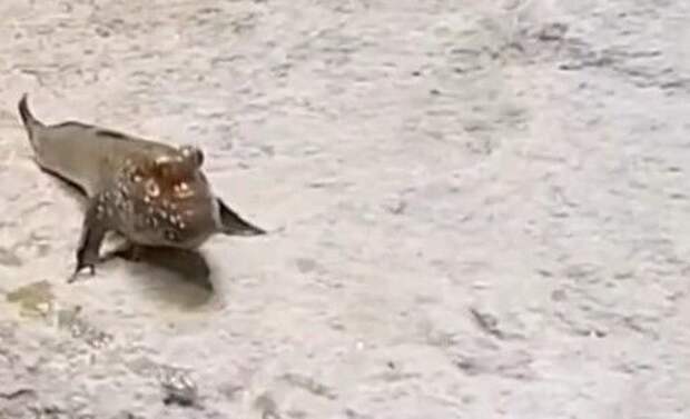 Девушка нашла на улице земноводную рыбу и оставила её себе в качестве питомца. Кажется, рыба и сама не против.