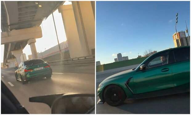 Водитель автомобиля "БМВ" заметил восхищённый взгляд и камеру в соседней машине, и решил показать, что такое быть водителем "БМВ".