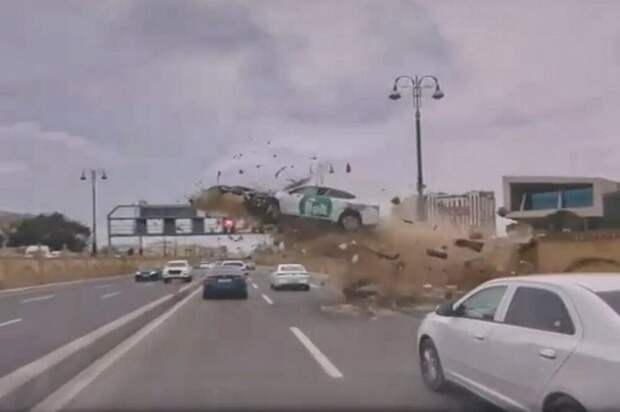 В Баку такси пробило ограждение и пролетело над проспектом Гейдара Алиева. Полет был недолгим и завершился для водителя и его пассажирки в больнице. У женщины диагностировали ушиб грудной клетки, 51-летний извозчик получил резаную рану левого колена.