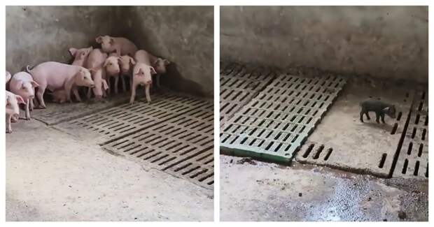 Реакция группы свиней на черного поросенка. Даже свиньи бывают расистами!