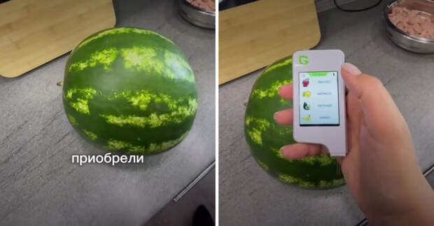 Покупательница приобрела арбуз в одном из супермаркетов сети Magnum и решила проверить его качество с помощью нитратомера — прибора, измеряющего содержание нитратов и нитритов.