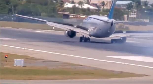 На острове Синт-Мартен у самолета повредилось шасси во время приземлении. Жесткая посадка попала на видео.