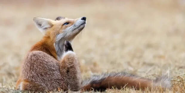 Лиса прогуливалась по пляжу как внезапно на нее с воздуха налетел сокол. Благодаря упругости и гибкости, ей удалось обмануть хищника и избежать нежелательных последствий.