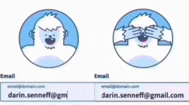 Форма авторизации на зарубежном сайте, которая нравится многим посетителям. Анимированный снежный человек наблюдает за вводом логина и пароля.