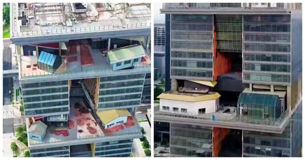 Перед вами будущий офис китайской компании Tencent в Гуанчжоу. Часть этажей небоскреба занимают террасы с отдельными зданиями.