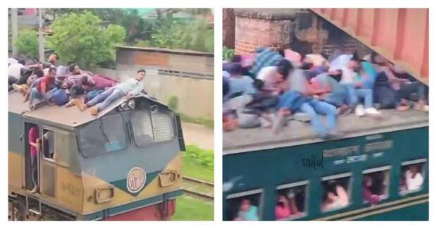 Ничего необычного, просто пассажирские поезда в Бангладеш. Интересно, как часто кому-то приходится смывать кровь с этого моста?