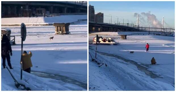 В Санкт-Петербурге пёс убежал от хозяина на лёд Малой Невы. Для поимки питомца развернули целую спасательную операцию.